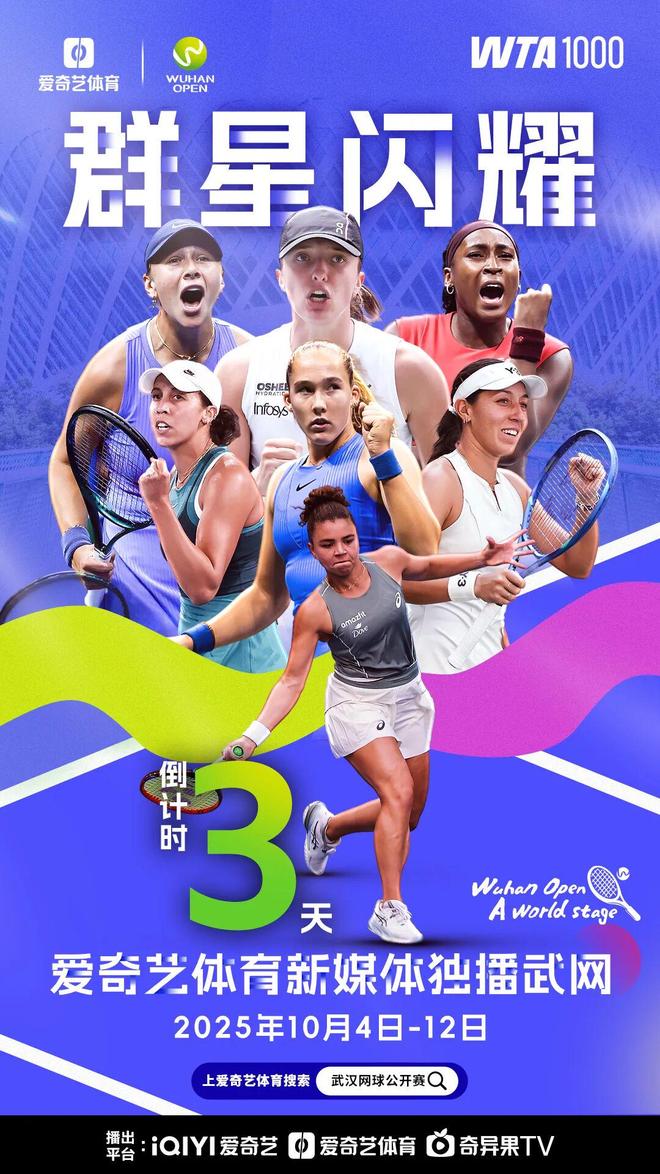 今天,距离2025武网揭幕还有3天。2025武网,爱奇艺体育新媒体独播所有赛事。