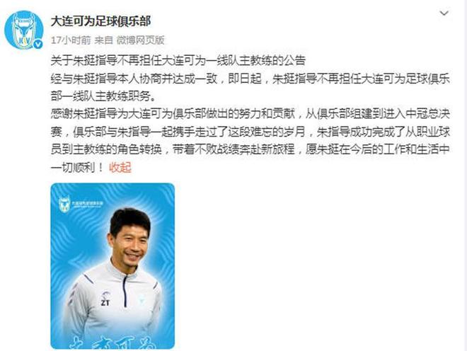你听说过一位教练员率队打了10场比赛,战绩为6胜4平,保持不败,还能下课吗?这就有一个!那就是中冠球队大连可为队主教练朱挺,在任期间,朱挺率队完成10场比赛,取得6胜4平的成绩,没能达到俱乐部的要求。9月30日,先是朱挺通过社媒发文自宣下课,随后可为俱乐部官宣。朱挺自宣:由于战绩不佳,未达到俱乐部预期标准,经与大连可为俱乐部协商:即日起,本人不再担任大连可为俱乐部主教练职位。朱挺写道:“一同战斗10轮正式比赛,共6胜4平,有惊喜也有遗憾,更多的是对自己能力不足的焦急忐忑,未来一定充分学习,夯实基础,努力提高业务水平,为大连足球做微薄的贡献,少说空话多干事实,用这次宝贵的联赛经验服务更多,对足球有理想有憧憬的球员!”朱挺感谢了俱乐部高层对自己的厚爱。大连可为俱乐部也官宣确认了此事。对朱挺为大连可为俱乐部做出的努力和贡献表示感谢,表示一起携手走过了这段难忘的岁月,朱指导成功完成了从职业球员到主教练的角色转换,带着不败战绩奔赴新旅程,愿朱挺今后在工作和生活中一切顺利!起初,有很多球迷不理解,为何6胜4平的战绩还能下课。但了解中冠联赛赛制的球迷表示理解,由于是赛会制,小组赛阶段大连可为5场胜利已是过去去,目前总决赛阶段,大连可为的战绩为1胜4平,5场比赛仅积7分,在总决赛北区排名第四,目前北区排在榜首的上海赛更达橘橙积和第二名南京铁虎河海同积13分,可为落后他们多达6分!落后北区排名第三的大连涵瑀1分。原来,中冠竞争也很相当激烈,朱挺这样的成绩显然无法达到俱乐部的目标,下课不冤。朱挺身上有一种不服输的精神,将来如果做俱乐部领导或领队,可能更适合。当职业教练,还需要继续钻研!希望大连足球乃到中国足球能多一些优秀的本土教练。中甲大连鲲城积38分,在积分榜排名第五。球队第一射手穆谢奎已经打进17粒进球,在中甲射手榜排名第三,落后领跑射手榜的居伊-姆本扎5球。这对于一名38岁的老将来说,非常不易,要知道,刚果前锋姆本扎现年25岁,正处当打之年。有球迷调侃:“马莱莱还不如大奎!”要不英博把大奎买来吧。”“马莱莱去鲲城,两人互换!”当然,希望这仅限于球迷的调侃。如果真较真,那太小看中超了!马莱莱终结能力是不如穆谢奎,但中甲和中超节奏能比吗?马莱莱的速度、冲击能力在中超一流,可搅乱防线,创造机会。即便射术不精,也不能去换现在的大奎。如果穆谢奎来英博,马莱莱走了,李国旭的战术体系就彻底改变了,英博保级会更困难。穆谢奎自己都觉得打不了中超了,否则,能不留在云南玉昆吗?在中甲大杀四方,不一定代表在中超就合适英博,这是一定的!假如大奎再年轻三岁,英博还可考虑。【您若喜欢“刀锋体育”的文字,请果断关注,了解中国足球不迷路】