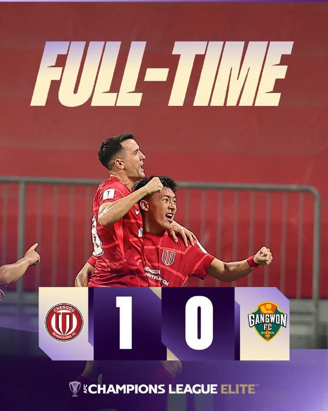 成都蓉城队拿下历史第一个亚冠精英联赛的胜利。