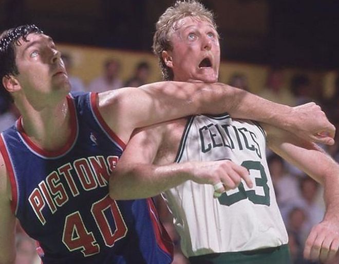 第十位:里克・马洪——“坏孩子军团” 的暴躁利刃里克・马洪的暴脾气,是 NBA “坏孩子军团” 时代最鲜明的标签之一。作为活塞队内线的 “恶汉” 代表,他的怒火从不掩饰,职业生涯 16 次球场斗殴事件,件件透着狠厉 —— 从与对手的肢体冲突升级为全武行,到恶意踩踏对手脚踝的危险动作,每一次爆发都让赛场瞬间陷入紧张。他从不是靠技巧征服对手的球员,而是以暴躁的气场震慑全场:队友陷入争执时,他永远是第一个冲上前的 “打手”;对手稍有挑衅,他便会用推搡、怒吼甚至过激动作回应。这种刻在骨子里的暴戾,让他成为联盟公认的 “麻烦制造者”,也成了活塞队 “铁血防守” 背后,最令人忌惮的暴躁底色。在活塞队的战术体系中,马洪承担着 “清道夫” 的角色 —— 每当兰比尔用垫脚、锁喉等阴招激怒对手后,他便会像斗牛犬般冲上前展开肉搏。1986 年对阵尼克斯的比赛中,他为保护托马斯,一脚将麦克海尔踹飞两米远,事后轻描淡写地表示:“哥哥保护弟弟不需要理由”。这种 “以暴制暴” 的生存法则,让活塞队连续三年将乔丹阻挡在总决赛门外。