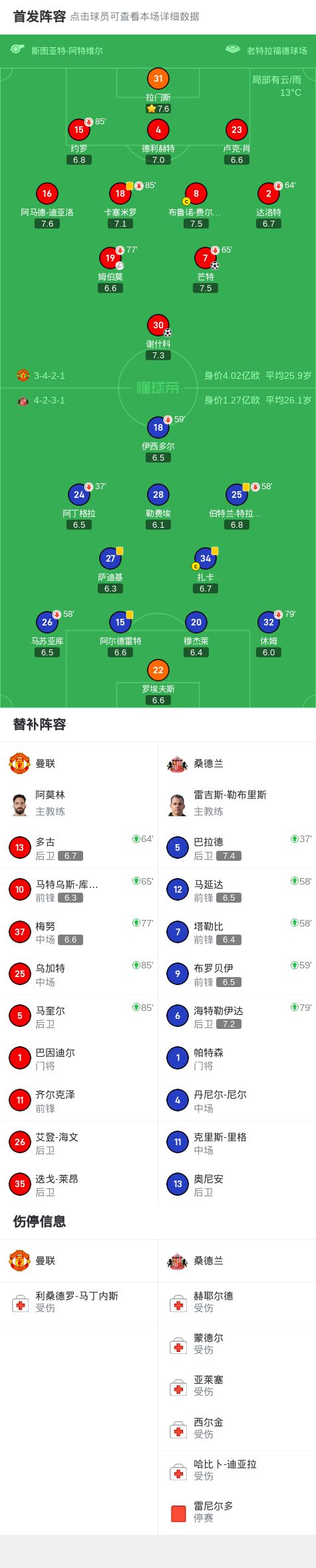 剑南春曼联20桑德兰,芒特首开记录,谢什科连场破门