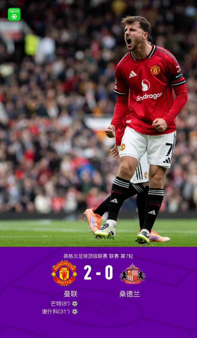 北京时间10月4日晚间22:00,英超联赛第7轮,曼联坐镇主场老特拉福德球场,迎战桑德兰,本场比赛主裁判为斯图亚特-阿特维尔,上半场,姆伯莫助攻芒特首开记录,B费兜射中柱,迪亚洛错失良机,谢什科扩大比分。下半场,拉门斯出击与伯特兰-特拉奥雷相撞引发争议,布罗贝伊造险,塔勒比错失单刀。最终,曼联2-0桑德兰。关键事件第8分钟,姆伯莫助攻,芒特凌空打门直入死角,曼联1-0领先桑德兰!上咪咕独家看英超第31分钟,达洛特手抛球造混乱,谢什科门前包抄破门,曼联2-0桑德兰!上咪咕独家看英超精彩瞬间双方球员进场,比赛即将开始上咪咕独家看英超赛前,双方为曼彻斯特恐怖袭击的遇难者默哀上咪咕独家看英超第3分钟,惊出冷汗!马苏亚库越位位置传球,特拉奥雷没能踢上上咪咕独家看英超第8分钟,姆伯莫助攻,芒特凌空打门直入死角,曼联1-0领先桑德兰!上咪咕独家看英超第13分钟,达洛特凶狠撞倒勒费埃,后者痛苦倒地上咪咕独家看英超第21分钟,迪亚洛右路带球内切后兜射,被罗埃夫斯扑出上咪咕独家看英超第22分钟,姆伯莫禁区外远射,罗埃夫斯再次将球扑出上咪咕独家看英超第26分钟,B费兜射击中横梁弹出,随后迪亚洛头球顶偏上咪咕独家看英超第31分钟,达洛特手抛球造混乱,谢什科门前包抄破门,曼联2-0桑德兰!上咪咕独家看英超第36分钟,半场还没结束,阿丁格拉便被换下,巴拉德登场上咪咕独家看英超第41分钟,达洛特禁区内劲射,可惜将球踢高上咪咕独家看英超第43分钟,扎卡禁区外远射,拉门斯将球扑出上咪咕独家看英超第45+9分钟,谢什科禁区内抬脚过高,但经过VAR提示后,裁判没有判罚点球上咪咕独家看英超第46分钟,谢什科展现出自己的背身护球能力,造成巴拉德犯规上咪咕独家看英超第52分钟,两球领先,弗格森爵士在看台和朋友交谈甚欢上咪咕独家看英超第54分钟,谢什科巧妙传球,可惜姆伯莫的射门有些不着边际上咪咕独家看英超第57分钟,曼联门将拉门斯出击与特拉奥雷相撞,后者被判罚假摔染黄上咪咕独家看英超第64分钟,进球功臣芒特在球迷的掌声中被换下,库尼亚替补登场上咪咕独家看英超第70分钟,迪亚洛倒三角回敲,可惜卡塞米罗将球踢高上咪咕独家看英超第74分钟,穆杰莱右路扫向门前,可惜布罗贝伊中路没有包抄到上咪咕独家看英超第75分钟,扎卡身后踢倒库尼亚,主裁判出示黄牌上咪咕独家看英超第76分钟,梅努替补登场,换下状态不佳的姆伯莫上咪咕独家看英超第81分钟,卡塞米罗铲倒布罗贝伊,主裁判出示黄牌上咪咕独家看英超第84分钟,库尼亚头球攻门,可惜稍稍顶偏上咪咕独家看英超第89分钟,库尼亚左路突破内切后低射,可惜太正被罗埃夫斯没收上咪咕独家看英超第90分钟,错失良机!塔勒比单刀推射,被拉门斯用腿挡出上咪咕独家看英超球队阵容技术统计【上咪咕独家看英超】