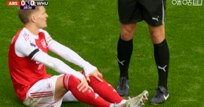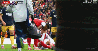 独家看英超就在咪咕第21分钟,厄德高伸脚拦截受伤,队医上场进行治疗
