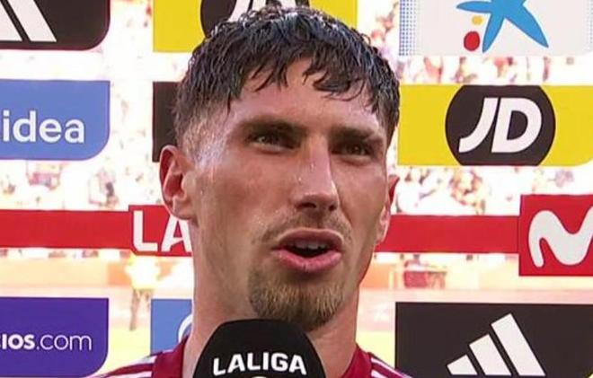 谈谈你的感受“这是我人生中最幸福的日子之一,从比赛开始到结束,我们都理应获胜,能够享受这样的日子,这种感觉将永远伴随我。”侵略性是否不可妥协?“侵略性和付出是不可妥协的,这正是我们赢得像今天这样的比赛的关键。我们全队一起赢得了比赛,球迷在我们表现不佳的时候给予了重要的支持。”你的进球是怎么发生的?“我在那次进攻中已经筋疲力尽,用仅剩的力气完成了射门,很高兴能赢得比赛,因为我们已经很久没有在主场获胜了。”