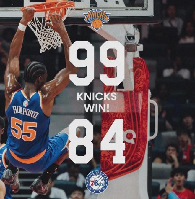 这还不是最难看的,76人全队在三分线外35投3中,命中率只有8.6%。最终,尼克斯以99比84战胜了76人,不知道阿布扎比现场花高价买了球票的球迷会不会高喊退票。