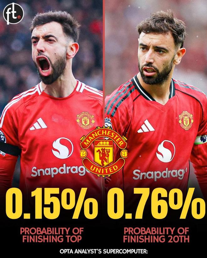 北京时间10月9日,来自知名数据机构Opta的预测显示,在本赛季英超前7轮过后,曼联排名垫底的概率甚至高于他们最终赢得联赛冠军的概率。
