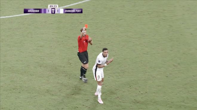 我们将思绪再度拉回上轮亚冠精英赛。上海海港客场挑战广岛三箭,比赛来到常规时间的最后一分钟,上海海港后场断球准备快速反击,莱昂纳多一脚直塞找前场插上的古斯塔沃。古斯塔沃面对两人的夹防,为了快速摆脱防守,对抗中推倒了荒木隼人。主裁判亚历山大金在犹豫了几秒之后,直接向古斯塔沃出示红牌,将其罚出场!