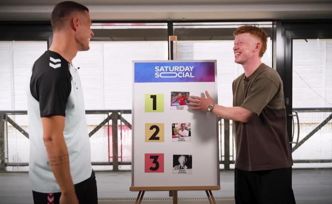 接下来是道难题——“瑞士著名人物”。你需要给这几位按“知名度”排个序,候选名单是费德勒、爱因斯坦,还有沙奇里。得说明一下,可能有人会有疑问:爱因斯坦出生在德国,但他从1901年起就获得了瑞士国籍,这点我们先明确下来。好的,我先从罗杰-费德勒说起吧——他的影响力可不止局限在瑞士。确实不可思议。我选他不是因为他来自巴塞尔,也不是因为我们认识——他还是巴塞尔足球俱乐部的忠实球迷。关键是,他不仅是瑞士人的偶像,更是所有人的偶像。你几乎听不到任何关于他的负面新闻,他的职业素养和人品都无可挑剔。是啊,他在场外也是个很棒的人吧?非常谦逊,待人很随和,而且是个顾家的人。我对他充满敬意。所以你要把他排第一?不,我会把他排第二。哇,第二?对,因为我要把第一名给我的朋友沙奇里。沙奇里?对。我和他一起并肩作战了10多年,从小就认识,我们的家人、父母、兄弟也都互相熟悉。而且以他的能力、他的职业生涯成就,再加上我们之间深厚的情谊和彼此的尊重,我必须把他排第一。太赞了!他的职业生涯确实很辉煌,背后的家人也一直支持他。没错,能和沙奇里这样的人一起成长,还有罗杰(费德勒)和爱因斯坦这样的瑞士名人,我真的很自豪。这可能是唯一一份“沙奇里排在爱因斯坦之前”的榜单,但我尊重这个选择,甚至觉得很合理。是啊,因为我和沙奇里之间有太多共同的经历和故事,这就是我把他排第一的原因——他就是沙奇里,对我来说意义不一样。完全理解。【上咪咕独家看英超】