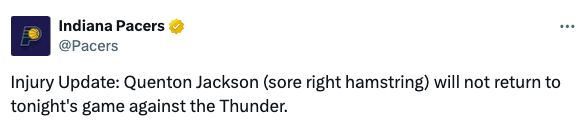- NBA | 2人伤退!步行者官方宣布杰克逊&弗菲因伤提前退出比赛