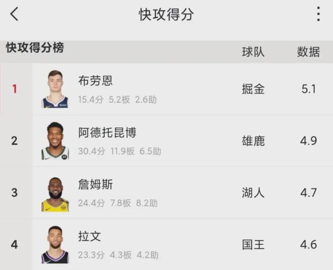 注意啊,是下快攻很快,不是别的地方快。据统计,布劳恩上赛季场均快攻得分是5.1分,高居联盟第一,他就像是一个弹力发射器,随时可能启动冲刺。