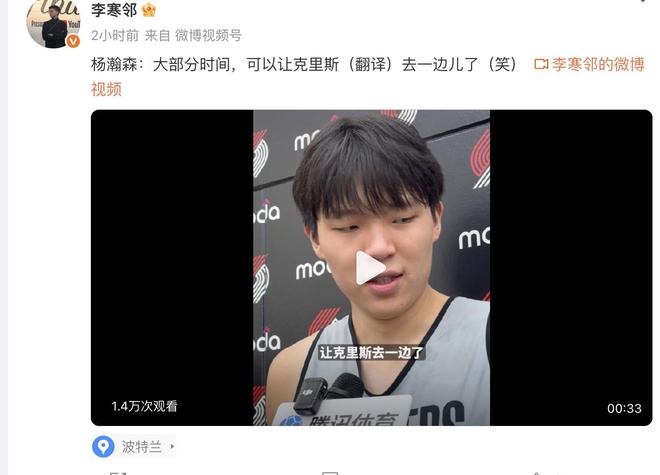 而且据了解,青岛男篮还在他们的主场组织的观赛仪式,号召青岛的球迷到现场一起为杨瀚森加油打气。这些来自于家乡球迷的支持,都会让杨瀚森以最好的状态出战本次比赛。除了这一点之外,另外一方面根据前方记者透露的消息,在最新的采访日里面,杨瀚森基本上已经能够独自听懂国外记者采访的大概意思,这应该也算是一个比较大的进步。毕竟杨瀚森想要在赛场上打好比赛,就必须得更多依靠自己,听懂教练组的战术,和队友们在场上更好的沟通。如今英语取得了一定的水平进步。确实是一个非常利好的消息,
