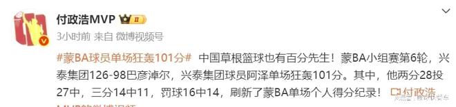 中国篮坛又出现超级砍分大杀器了,近日,蒙BA的一场比赛中,兴泰集团最终以126-98击败巴彦淖尔,这本该是一场关注度一般的比赛,不过,在这一场比赛中,前CBA弃将阿泽却成为了全场的焦点。这一场比赛中,他疯狂出手42次,命中38球,这其中三分球14投11中,疯狂砍下101分的恐怖数据。不知道,阿泽这样的表现,还能否帮助他再度重返CBA联赛呢?