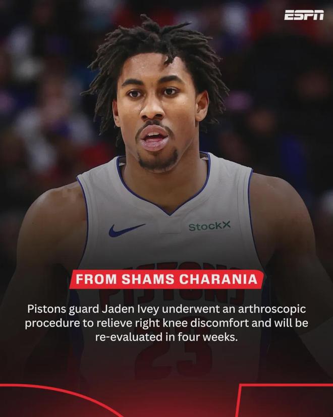公牛后卫科比-怀特右小腿拉伤,将在两周之后评估。活塞后卫杰登-艾维在10月17日接受右膝关节镜手术,四周后重新评估,2025年估计报销了。9月27日,76人后卫麦凯恩接受右手拇指手术,11月中旬重新评估,目前归期未定。