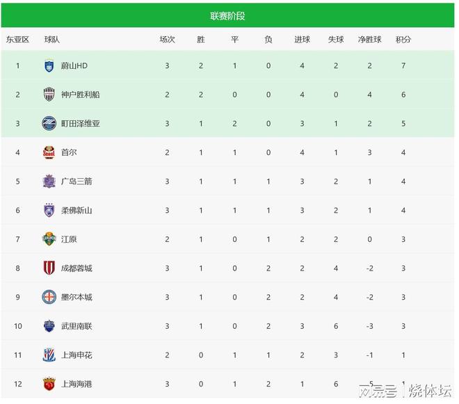 - 中超 | 亚冠精英赛最新积分榜:中超2队均输球,上港垫底,2队3轮不败
