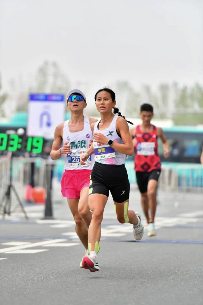 而另外一边,在追上朱卿后,黄菲却跑得很舒服,“我感觉那个配速就是我的目标配速,两人一起跑起来的感觉还挺好。”她决定自己能跟到哪是哪。
