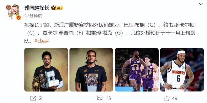 - CBA | 全部确定!广厦男篮已经签下四名外援,预计11月到队