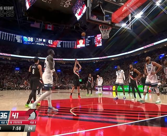 杨瀚森罚球 直播截图此后下半场,杨瀚森没能再获得上场机会。最终,开拓者队主场以114比118憾负森林狼。