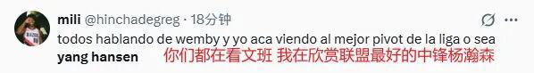 不吹不黑,杨瀚森首秀其实是乏善可陈的。上半场5分钟,1投0,罚球2中2,2分1板1犯规不能说格格不入,现在起码仍是游离在开拓者体系外的编外人员。说得好听是第二替补中锋,说得难听就是饮水机。我们不能妄自菲薄,也不好夜郎自大。看看美国球迷对杨首秀的评价,也是不吹不黑,相当大度了。