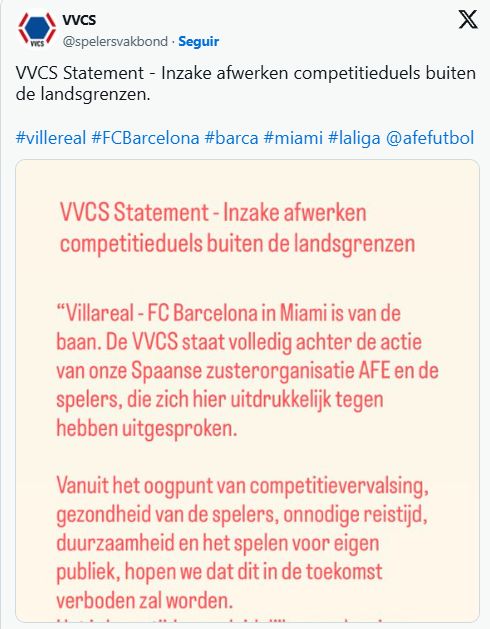 - 西甲 | 荷兰球员联盟发文抵制西甲海外联赛:这种行为应永久被禁止