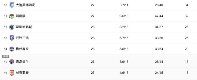 - 中超 | 中超最新积分榜:保级形势巨变,新鹏城基本上岸,倒数3队仍差2分