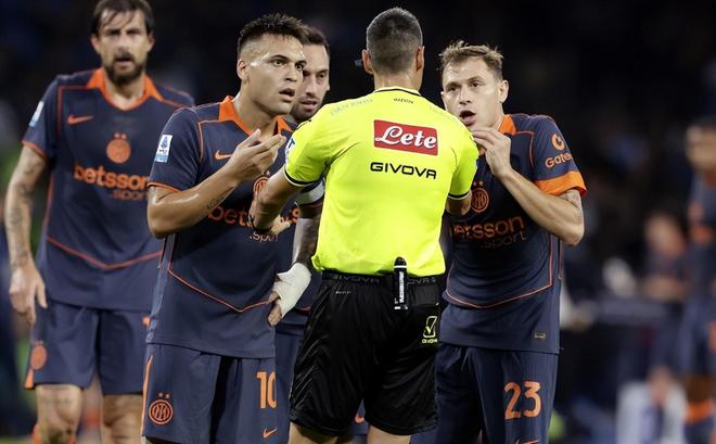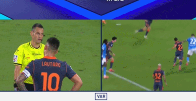 比赛开打后,国米便展现出反客为主的气势;第8分钟,恰尔汗奥卢角球开出,巴斯托尼前点甩头攻门滑门而过;第13分钟,博尼突破做球,恰尔汗奥卢远射偏出;第15分钟,那不勒斯后场出球失误,劳塔罗近距离射门被出击的萨维奇扑出。然而第33分钟,场上却出现争议一幕;迪洛伦佐禁区内前插接应,姆希塔良及时卡住身位,阿切尔比滑铲干扰成功碰到皮球,迪洛伦佐应声倒地,主裁判却判给了那不勒斯点球。纵使国米众将提出抗议,主裁判马里亚尼还是坚持原判,随后德布劳内操刀主罚命中,0:1!不过德布劳内在主罚过后拉伤了右大腿,无法坚持比赛被队医直接搀扶出场。