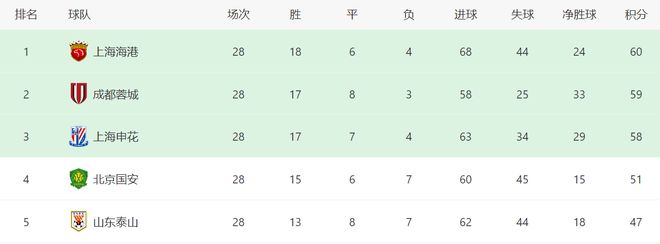 - 中超 | 中超争冠形势:还剩2轮海港蓉城申花仅差2分,国安彻底掉队