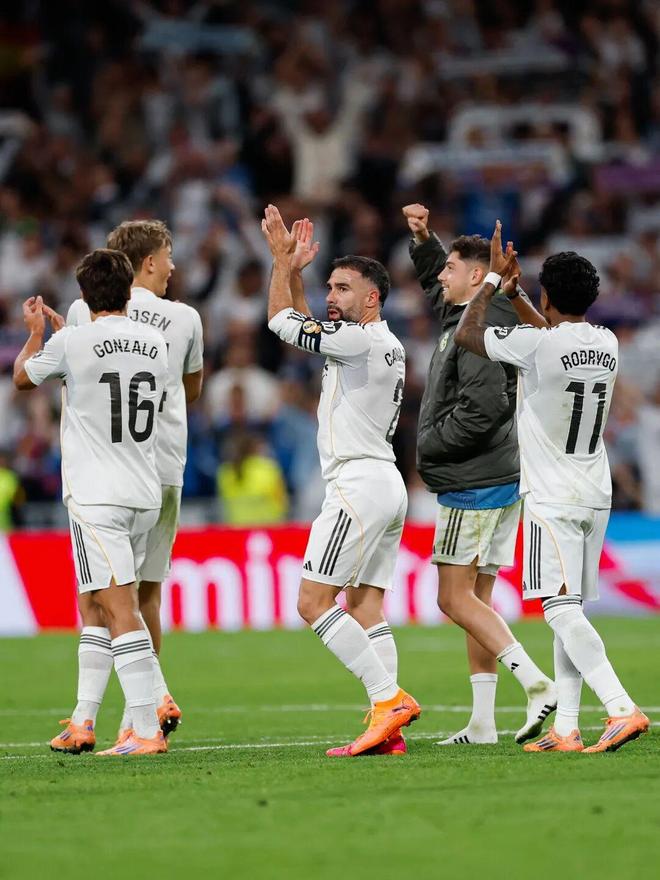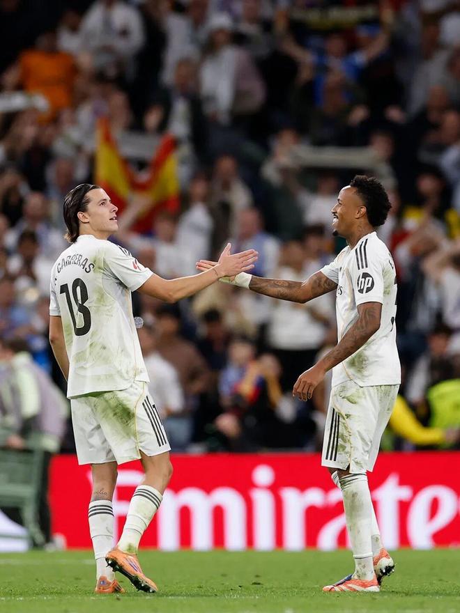 X(@realmadrid) hupu bilibili皇家马德里4-4-2哈维.阿隆索01 库尔图瓦 GK03 米利唐08 巴尔韦德 C 72'24 赫伊森18 卡雷拉斯05 贝林厄姆 90'06 卡马文加14 楚阿梅尼15 居莱尔 66'07 维尼修斯 72'10 姆巴佩 90'66' 21 卜拉辛72' 02 卡瓦哈尔 / 11 罗德里戈90' 16 冈萨洛 / 19 塞瓦略斯巴塞罗那/4-3-3/弗里克25 什琴斯尼 GK / 03 巴尔德(90' 18 G.马丁),05 库巴西(83' 28 巴尔德吉),23 孔德,24 埃里克.加西亚(74' 04 阿劳霍) / 08 佩德里(90' 亮黄变一红),16 费尔明,21 德容 / 07 费兰.托雷斯(74' 17 卡萨多),10 亚马尔,14 拉什福德13' 姆巴佩天外飞仙破门!VAR判罚越位在先。22' 这回真进了!贝林厄姆助攻姆巴佩单刀破门,1-0!