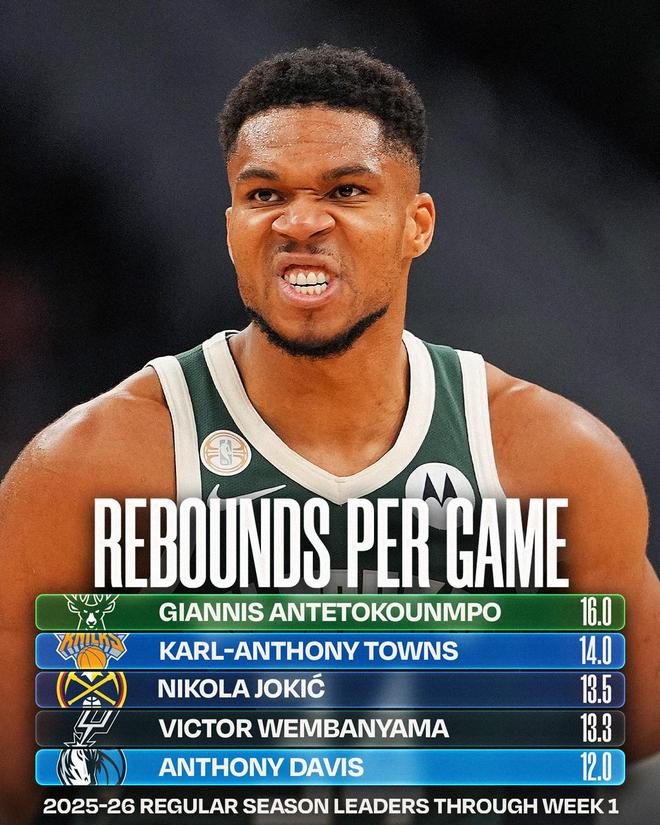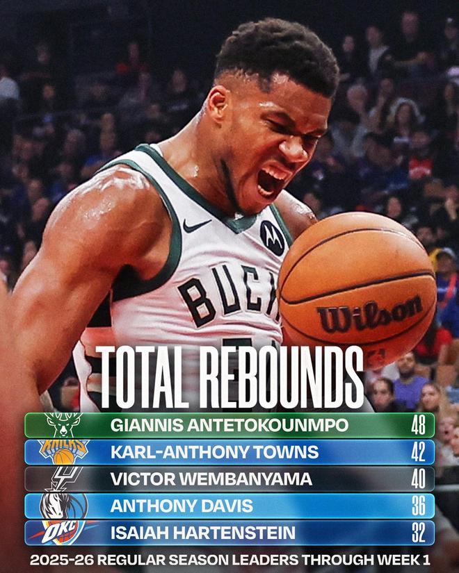 篮板总篮板榜字母哥 48唐斯 42文班亚马 40安东尼-戴维斯 36哈尔滕施泰因 32场均篮板榜字母哥 16.0唐斯 14.0约基奇 13.5文班亚马 13.3安东尼-戴维斯 12.0