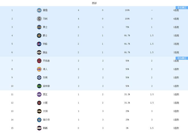 随着火箭首胜,开拓者大胜湖人,NBA西部最新排名:马刺4连胜领跑