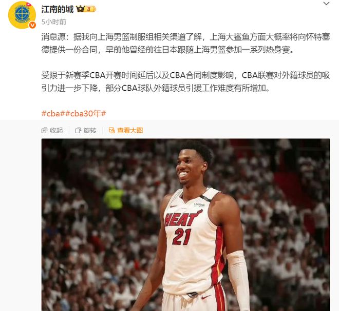 - CBA | 上海男篮确定第四名外援,辽宁三冠功勋加盟,上赛季场均23+5+4!