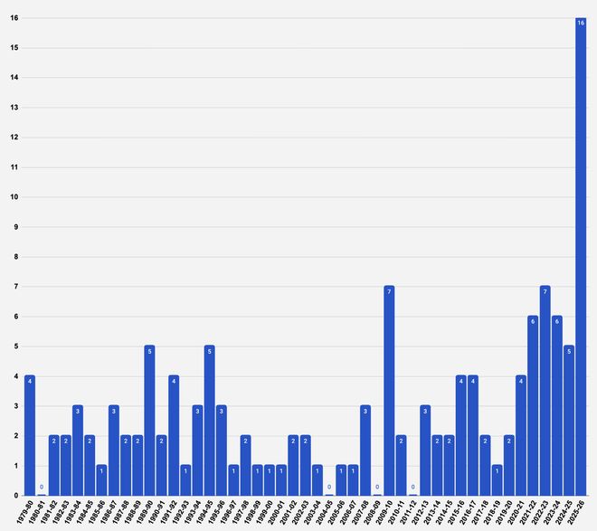 雷速体育10月28日讯 NBA常规赛正好结束了第一周的赛程。在过去的一周中,多位球星贡献神奇表现,一共出现了16次40+,其中包括4次50+。据美媒Automatic统计,在NBA历史上,联盟第一周打出40+次数排行榜上,本赛季的16次已经大幅刷新了历史纪录。此前最高的纪录是7次,分别是2009-10赛季以及2022-23赛季,不过不及本赛季的一半。