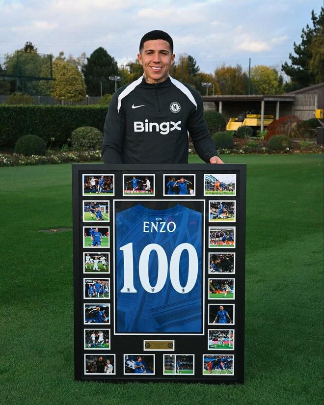 恩佐、凯塞多、帕尔默、查洛巴和库库雷利亚等五名球员已经代表切尔西在各项赛事出场超过了100次。当地时间10月28日,切尔西官方晒照,俱乐部向这五名球员赠送了百场里程碑纪念礼物,相框主体为一件印有球员名字和“100”字样的球衣,此外还有球员们切尔西生涯的高光时刻图集。