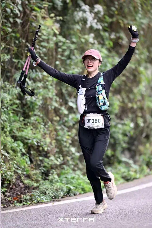 真正的考验出现在赛道后半段,一段距离不长但坡度极大的爬升路段横亘在眼前。此时,赛道上几乎所有人都在徒步攀登,没人能跑起来,只有走得快的和走的慢的区别。正当她感觉疲惫不堪时,身边不断经过的30公里组选手给了她巨大的激励。“我当时其实已经很累,但是看到30公里的选手都在旁边走,然后都还走得很快,我又觉得不行,我也能坚持,我也还能够继续。”