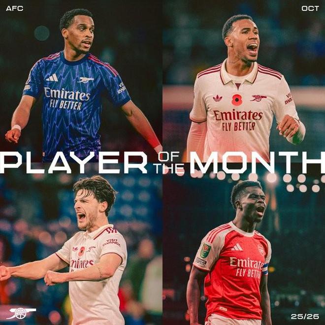 在10月,阿森纳的战绩为6战全胜,并且全部保持零封。阿森纳10月最佳球员候选加布里埃尔(出场6次,打进1球,助攻2次,后防线零封6次)赖斯(出场6次,打进1球,助攻1次)萨卡(出场6次,打进4球)廷贝尔(出场6次,后防线零封6次)【上咪咕独家看英超】