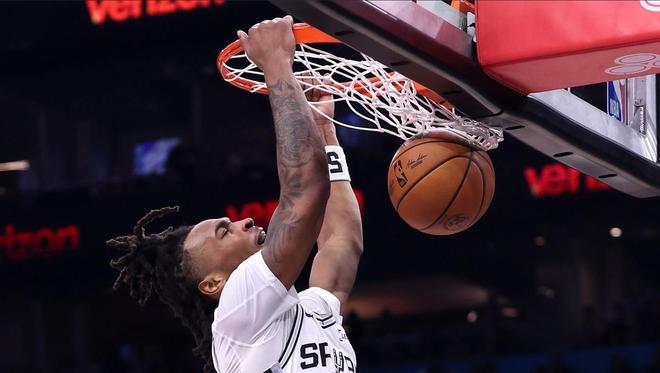 并且,文班亚马还创下了NBA历史第1的神迹。数据显示:文班亚马是NBA历史上首位单场砍下至少35分10篮板5助攻5盖帽,且投进5+三分的球员。卡斯尔19+11马刺队后场悍将卡斯尔,迎来了爆发。卡斯尔登场32分钟,18投8中,三分3中1,罚球2中2,轰下了19分5篮板11助攻3抢断的两双数据,正负值+15是全场最高。卡斯尔得到了全队的第三高分,在进攻端稳定输出。并且,卡斯尔还是全场的助攻王。激活了球队进攻的卡斯尔,还是全队此战的抢断王。在篮板球保护方面,卡斯尔也有着突出的贡献。卡斯尔暴扣