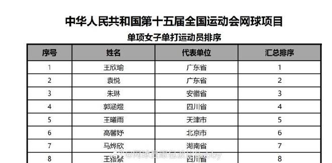 北京时间今日,全运会官方公布了网球女单项目的运动员排序,其中郑钦文已经不在名单之中,确认退出本届全运会女单赛事。