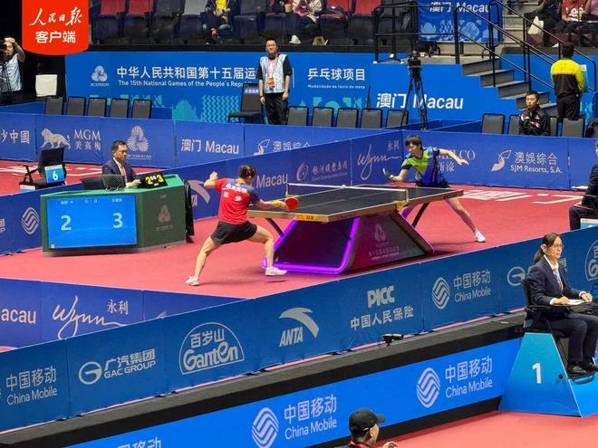 据人民日报消息,11月15日晚,十五运会乒乓球项目在澳门银河综艺馆展开两场女单半决赛争夺。