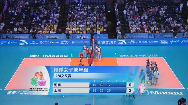北京时间11月17日,第十五届全运会排球项目迎来女排成年组1/4交叉赛的较量,以B组第三名晋级淘汰赛的上海队面对拥有朱婷的河南队。最终,上海女排连下三城,以3-0(25-19/25-19/25-17)击败对手挺进四强!