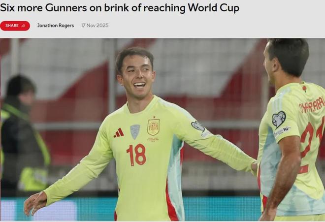 阿森纳官方更新了国际比赛日报告。祖比门迪+梅里诺+拉亚:西班牙4-0客胜格鲁吉亚,本场比赛祖比门迪首发踢满全场,并且打进了1粒进球,梅里诺出战62分钟,拉亚没有出场。此役之后,西班牙基本上已经锁定了世界杯出线资格。廷贝尔:荷兰1-1战平波兰,此役廷贝尔首发并踢满全场。只要荷兰在凌晨的比赛中战平立陶宛,就可以确保晋级世界杯(比赛凌晨已经结束,我这做新闻的时候还不清楚)。特罗萨德:比利时客场令人意外的1-1战平哈萨克斯坦,错失直接晋级,此役特罗萨德出战71分钟。诺尔高:丹麦2-2战平白俄罗斯,此役诺尔高出战71分钟。丹麦只要下场比赛战平苏格兰就能确保晋级。赖斯、萨卡、埃泽:英格兰2-0战胜阿尔巴尼亚,此役赖斯和埃泽均首发出场,并在第62分钟被换下,萨卡在第62分钟替补登场,并通过角球帮助凯恩进球,打开了胜利之门。萨利巴:法国3-1战胜阿塞拜疆,此役萨利巴作为替补没有登场。厄德高:挪威客场4-1战胜意大利,28年来首进世界杯!同时这也是2000年欧洲杯之后挪威首次参加国际大赛。厄德高因伤没有出场,但他在现场和队友们一起庆祝了这一历史性时刻。同时,卡拉菲奥里将跟随意大利参加世界杯附加赛。凌晨还有荷兰对立陶宛的比赛,不出意外的话,廷贝尔肯定能随队晋级的。祖比门迪最近表现是真好,在俱乐部和国家队都发挥着中流砥柱的作用,但这场又让他踢满了全场……实际上阿祖也是很累的。这个进球很漂亮,体现了球员的前插意识和门前冷静的射门能力。阿祖最近接受采访表示他还和梅里诺开玩笑他踢中锋的事,我看这样下,他自己也可以踢中锋了……比利时和丹麦看来也晋级有望,英格兰、法国和挪威等则已经出线,这么看的话,明年会有很多枪手参加世界杯啊……希望大家最起码能平安归来吧……这也是强队不可避免的难题:极易受到FIFA病毒影响!阵容越强,意味着球员们越可能是国家队栋梁,一到休赛期就越累……像赖斯这种,非常需要休息了,如果国家队主帅不体谅,那就只能阿尔特塔自己来,没办法,真哪天身体过载倒下了,那就完了……Squawka统计,赖斯是英格兰在世预赛期间创造机会最多的球员:16次。另外Squawka本月还有一项统计显示,赖斯是2025年英超创造重大机会最多的球员(23次),再加上国家队数据的话,很难想象赖斯居然已经是英超和国家队创造机会名列前茅的球员了,要知道就在几年前,人们还认为赖斯是后腰,甚至他一度是踢中卫的……这点要感谢阿尔特塔对赖斯的改造和信任了,一个是把他的位置提前,增加进攻自由度,再一个是开发出了定位球能力,赖斯的角球质量真的是相当高!继续进化吧!斯基拉发推:阿森纳、诺丁汉森林、曼联和维拉等多支英超豪强已经对奥林匹亚科斯的天才中场克里斯托斯-穆扎基蒂斯展示出了兴趣。奥林匹亚科斯对这名18岁中场的要价是3000万欧元,目前英超球队正领衔争夺战。今年2月的时候,伯明翰方面有个记者也报道过阿森纳对穆扎基蒂斯的兴趣,这人下个月才19岁,潜力非常被看好,而且水平据说已经不低。说起来,前段时间阿森纳刚踢完奥林匹亚科斯,他是比赛快结束才替补登场,没印象了……当然这个也不是可靠消息,但我们之前说过,阿森纳未来如果再买人,大概率是后腰和左边锋,所以关于中场的传闻格外留心一下吧。