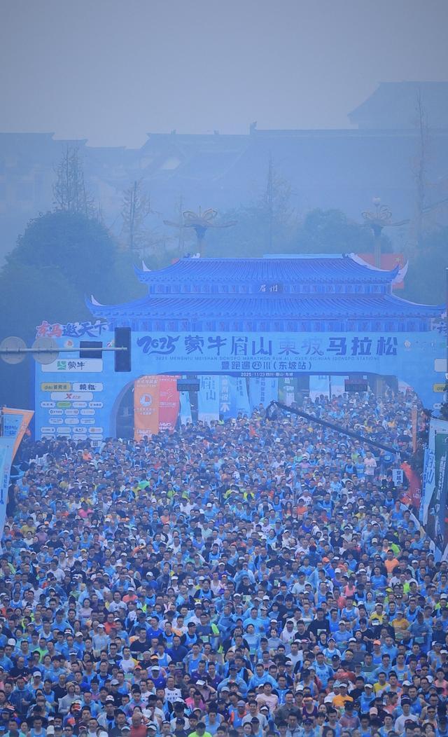 11月23日上午8时,2025蒙牛眉山东坡马拉松暨跑遍四川(东坡站)在东坡岛上激情启幕,1.7万名跑者齐聚岷江之畔,以脚步丈量东坡故里的灵秀山水,用奔跑对话千年传承的诗书文脉。