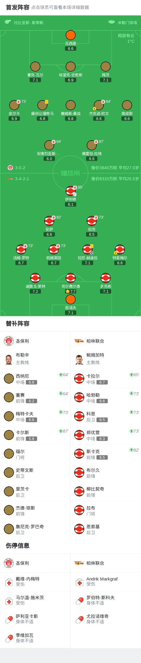 - 德甲 | 柏林联合10圣保利,拉尼赫迪拉制胜球