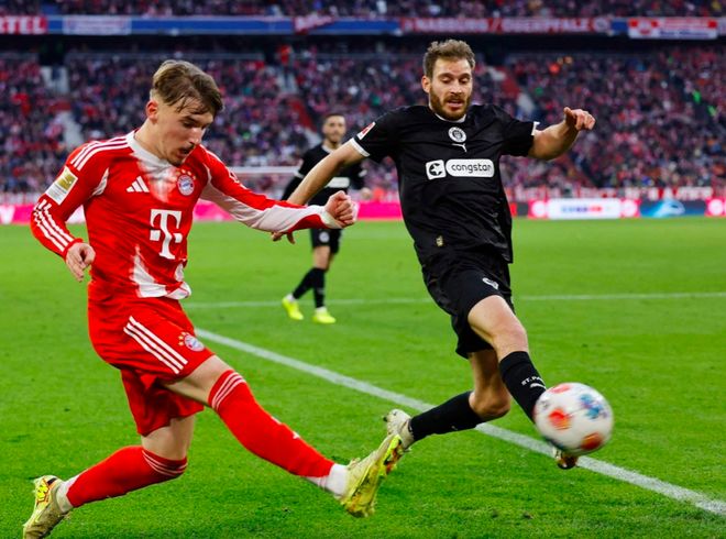 但在联赛层面,拜仁前11轮10胜1平,在积分榜上继续领跑。拜仁本场的对手圣保利状态奇差,最近8轮联赛全败,圣保利11轮只拿到7分,排名倒数第三。赛前,拜仁方面举办了科曼的告别仪式。开场只有6分钟,洪通吉从身后超车,撞开金玟哉,将球打进,圣保利取得梦幻开局。