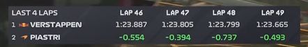 第48圈比赛仅剩9圈,皮亚斯特里还差身前维斯塔潘13秒!虽然前者每圈能够追近0.5秒左右,但奈何圈数不够啊!