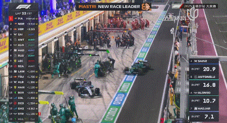来到21圈,皮亚斯特里通过TR向车队表示自己的左前胎已经有些挣扎了!第24圈,皮亚斯特里进站换胎耗时3.1秒,出站后排在阿隆索身前,处于当时的第5名(因为诺里斯还未进站)!
