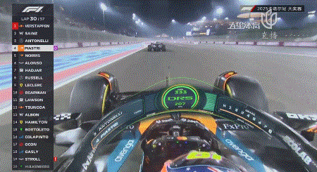 第29圈,皮亚斯特里已经来到了安东内利身后!第30圈,前者在一号弯之前用DRS干净利落的超越安东内利升至第3!