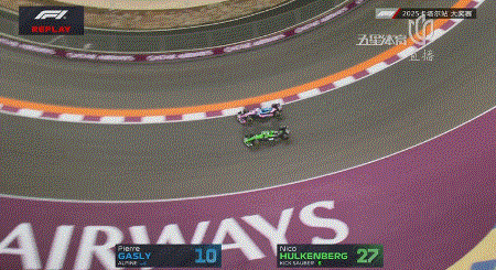第七圈,霍肯伯格在一号弯想要超越加斯利,但在对抗中双方发生碰撞,霍肯伯格撞上赛道指示牌退赛,并且触发黄旗!赛会出动安全车!