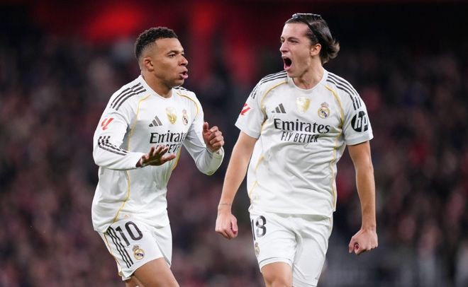 过去三轮联赛,皇马连续收获平局,不仅丢掉了榜首,还被巴萨甩开,因此本轮客场对阵毕尔巴鄂不容有失,好在姆巴佩延续了火热状态。开场仅7分钟,阿诺德助攻姆巴佩破门,帮助皇马1-0领先,随后第42分钟,姆巴佩门前头球摆渡助攻卡马文加顶进,帮助皇马2-0再下一城,再到第59分钟,姆巴佩外围轰出一脚世界波破门,帮助皇马3-0扩大领先优势,这个比分保持到了比赛结束,皇马积分达到36分,落后巴萨1分继续排在第二。本场比赛,姆巴佩打进两球、助攻一次,赛后当选官方评选的全场最佳球员,也是实至名归。据统计,姆巴佩在本赛季西甲已经贡献15球4助攻,超越哈兰德,成为五大联赛参与进球数最多的球员,同时西甲生涯第2次对阵毕尔巴鄂竞技首次取得进球。德国杯1/8决赛:拜仁VS柏林联合