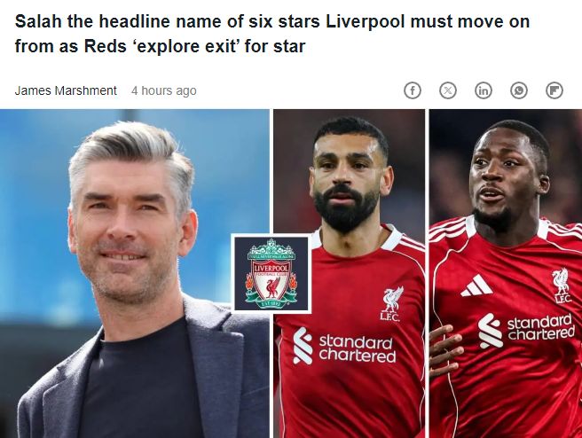 北京时间12月5日,据英国转会网站teamtalk报道称,利物浦已在积极筹划2026年的卖人计划。体育总监理查德·休斯计划清洗6名一线队球员,包括萨拉赫以及一位今年夏窗才加盟的“重磅新援”。