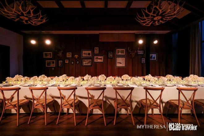 随着明信片的线索被串联,我们正式步入由悦游Condé Nast Traveler与Mytheresa打造的après-ski限时体验空间。日落后,松花湖的天色从湛蓝渐变为深邃的靛蓝,欢聚的场域从开阔的雪场转向温暖的室内。