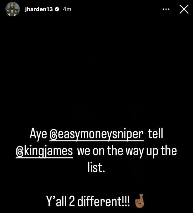 本场比赛,快船球星詹姆斯-哈登惨遭“里程悲”,他通过本场比赛完成对卡梅隆-安东尼的超越,正式升至NBA历史总得分榜的第十位。在哈登完成这一成就后,哈登的前队友、目前效力于火箭队的杜兰特发布个人社媒,晒出哈登的里程碑海报为其庆祝,他配文写道“传奇哈登”。随后哈登也在社媒上回复了杜兰特,并写道:“哎,告诉詹姆斯(总得分榜第一)我们可在前十榜单中了啊。你们俩都与众不同!”